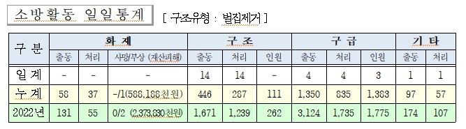 ○ 구조 14건(벌집 14)