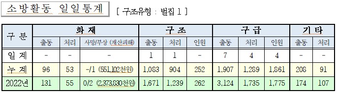 ○ 구급 7건(이송 4, 미이송 3)