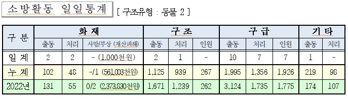 ○ 구조 2건(동물 2)