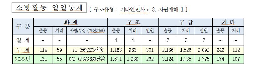 ○ 구조 4건(기타안전사고 3, 자연재해 1)