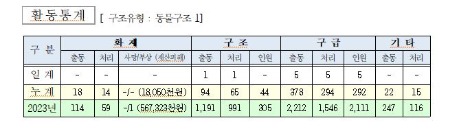 ○ 구조 1건(동물구조 1)