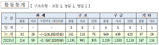○ 구조 3건(교통 1, 동물 1, 벌집 1 )