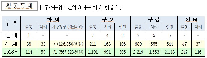○ 구조 7건(산악 3, 유케어 3, 벌집 1)