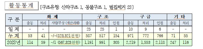 ○ 구조 25건(벌집제거 23, 산악사고 1, 동물구조 1건)