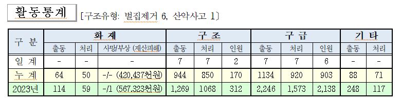 ○ 구조 7건(벌집제거 6, 산악사고 1)