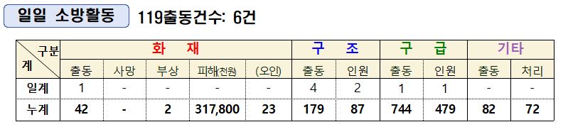 인제소방서 일일소방상황(6. 1.)