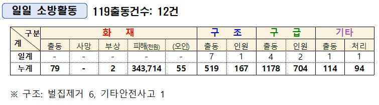 ○ 구조 7건 [벌집제거 6, 기타안전사고 1]