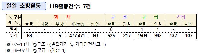 ○ 구조 6건 [벌집제거 5, 기타안전사고 1]