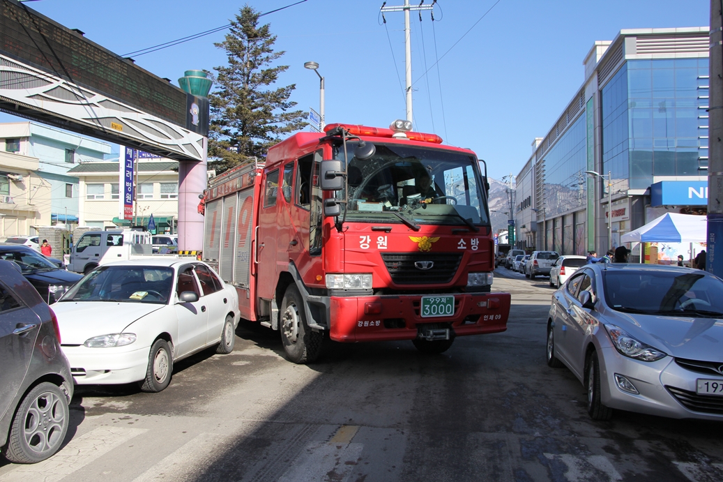 인제소방서 구조진압대 1팀에서는 구정연휴 전날(2월 8일) 인제시장 일대에서 소방통로 확보 훈련을 실시했습니다.