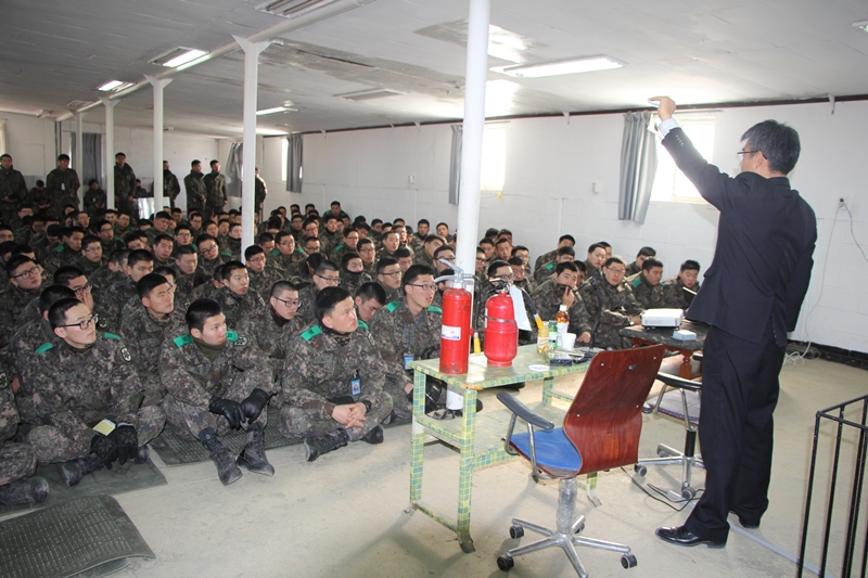 인제소방서(서장 김용락)에서는 겨울철 군부대 재난상황 발생에 효과적으로 대응하기 위하여 1. 10일 10시 제7623부대 강당에서 평촌대대 군장병 및 간부 300명 대상으로 소방안전교육(소소심 교육)을 실시하였다.