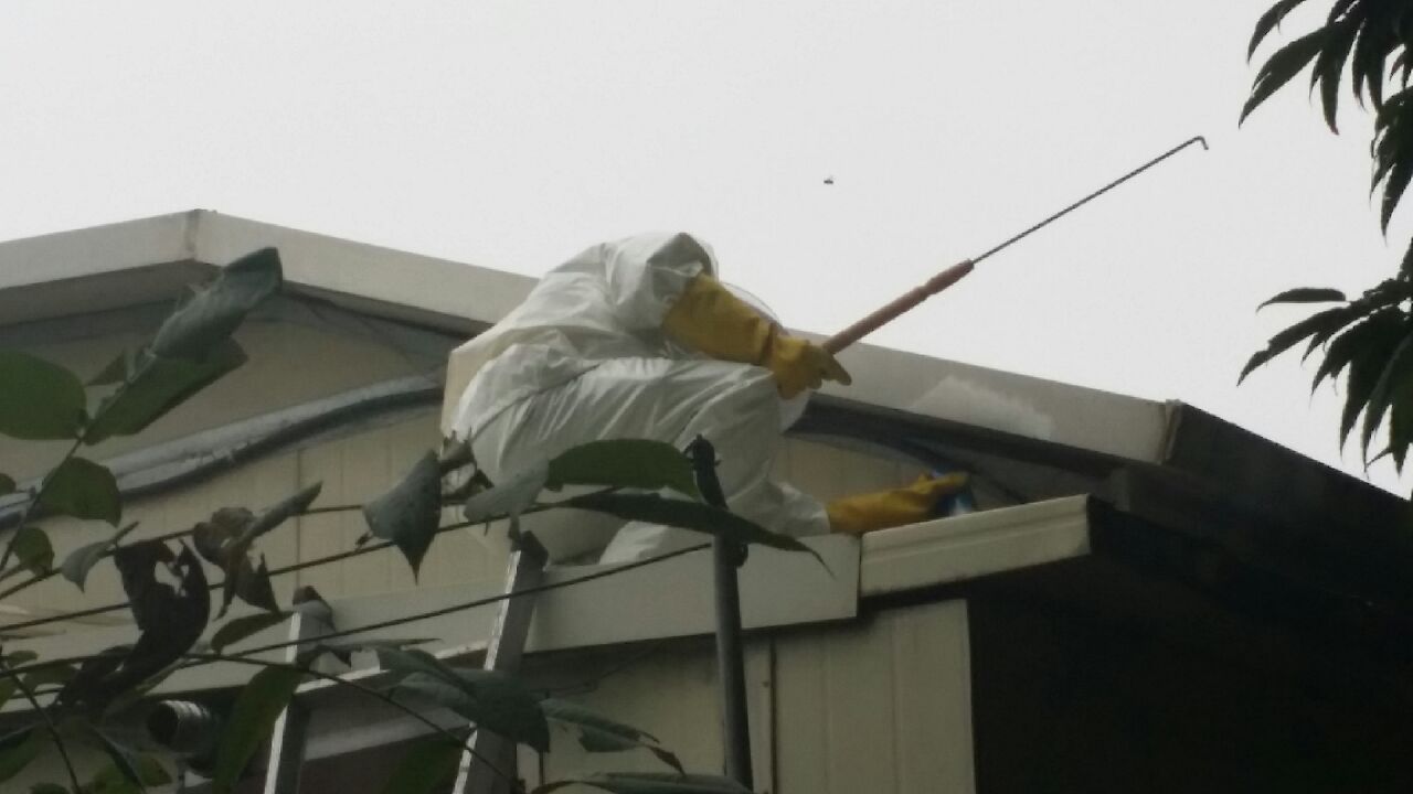 추석을 맞이하여 고향집에 방문하신 자제분의 신고로 고향집 지붕에 있는 말벌집 제거... 안전한 추석 보내세요
