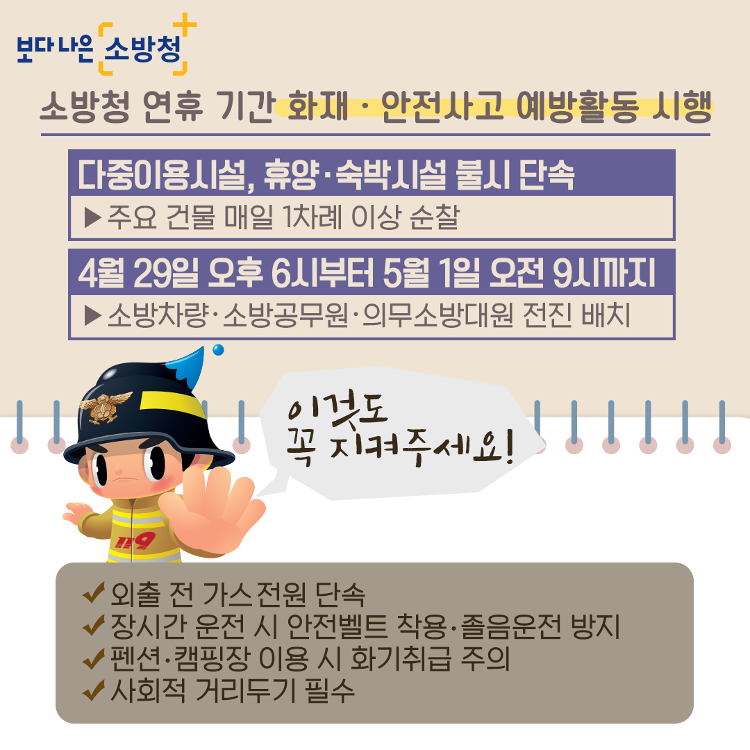 소방청 연휴기간 화재, 안전사고 예방활동 시행