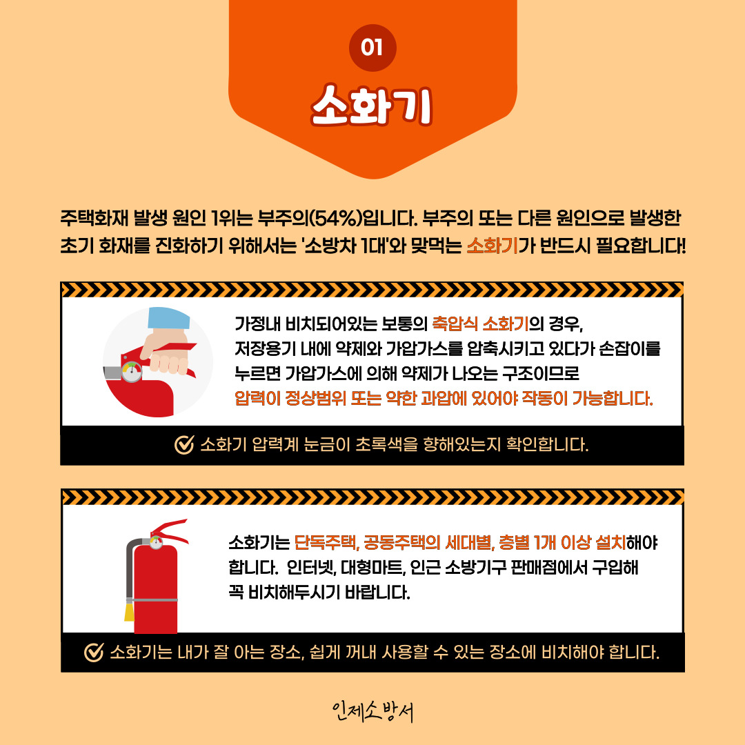 주택용 소방시설(소화기, 감지기) 설치 또는 점검 사진을