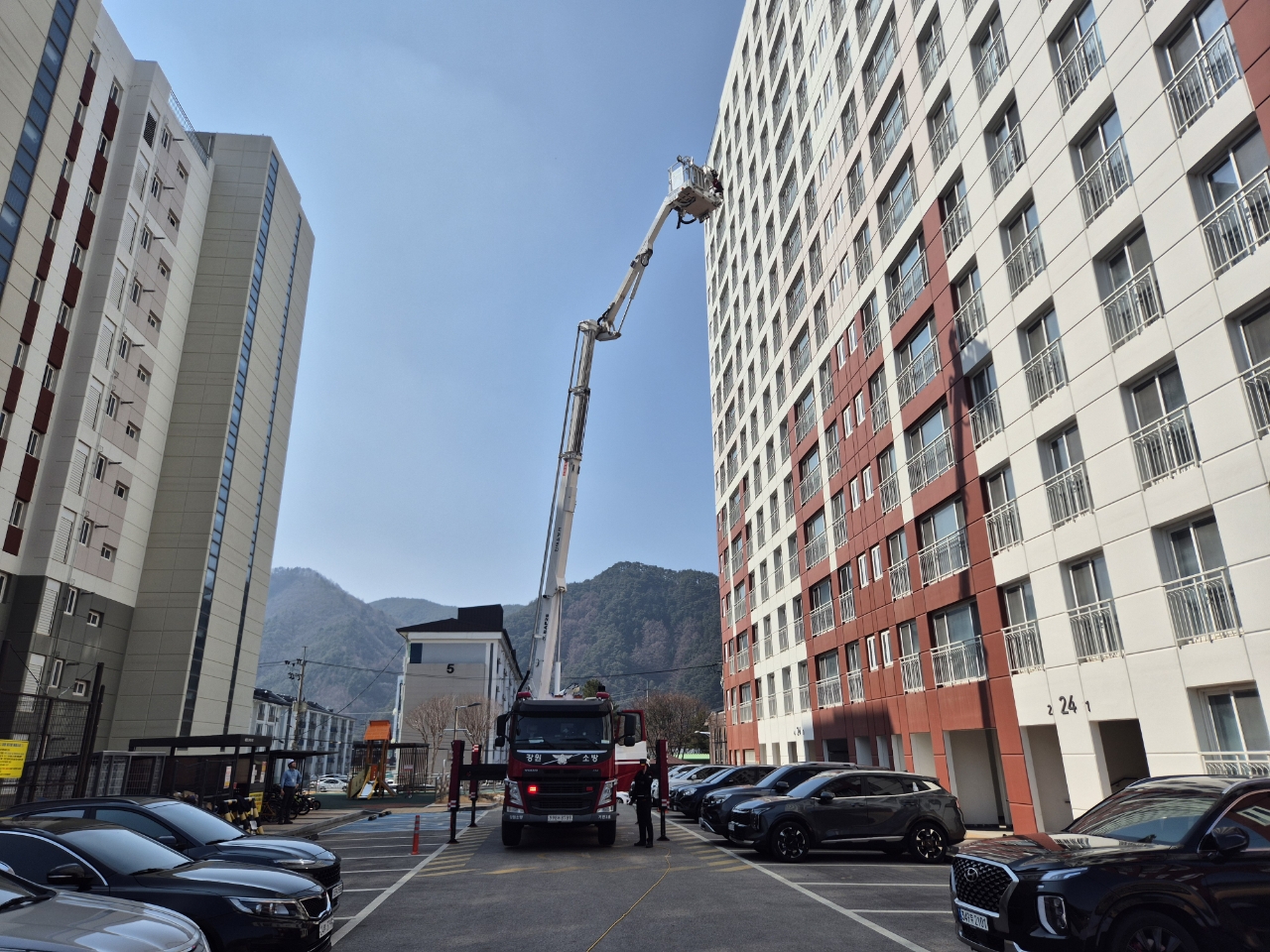인제소방서, 고층아파트 화재 대응 현장적응훈련 실시