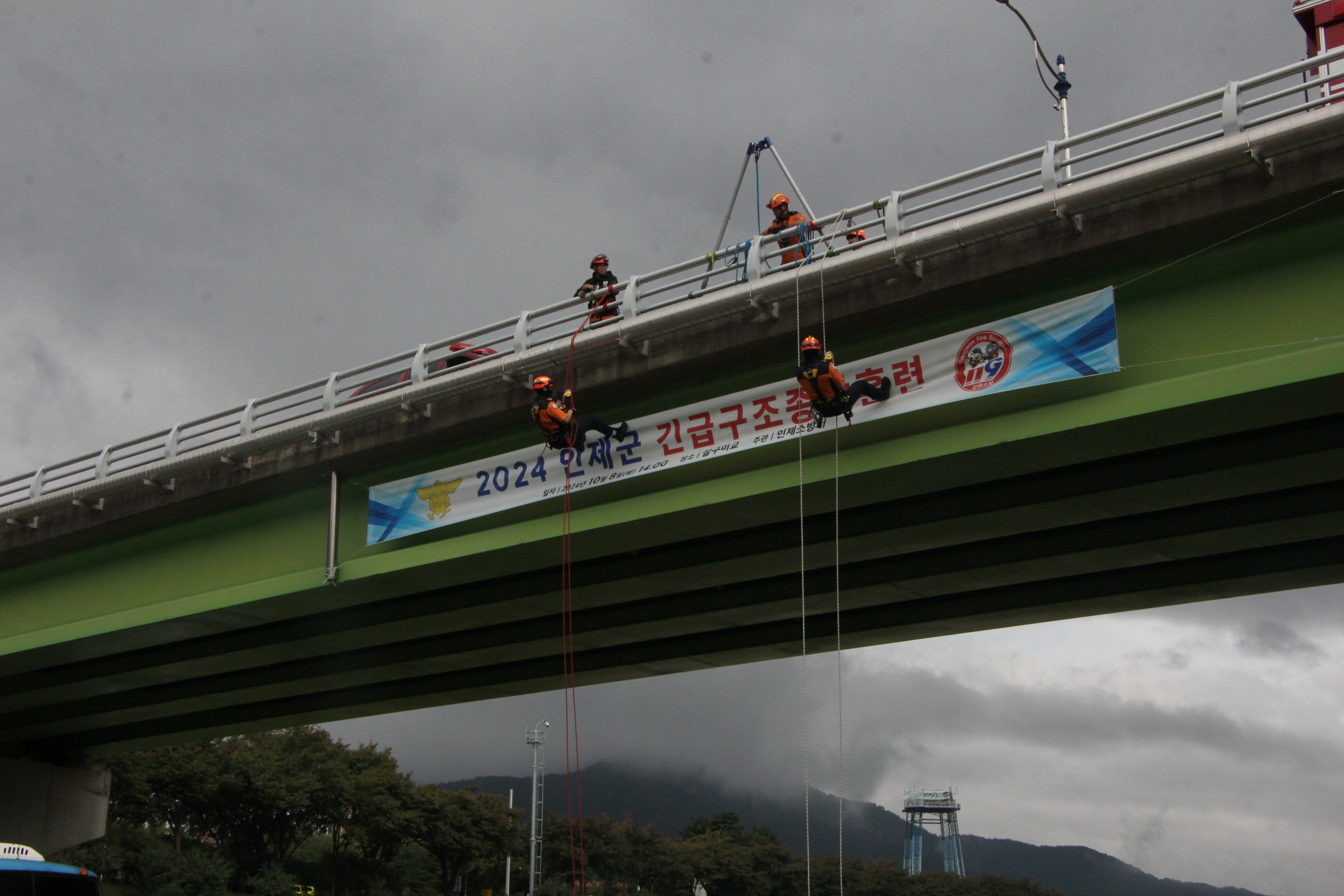 인제소방서(서장 정만수)는 8일 오후 2시 인제읍 소재 살구미교 교량 아래에서 2024년 긴급구조 종합훈련을 실시했다고 밝혔다.