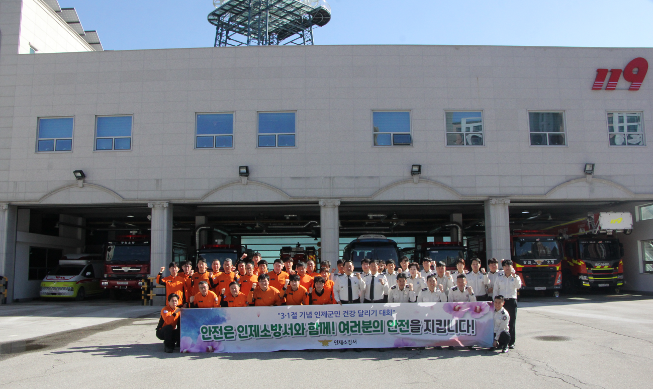 인제소방서(서장 정만수)는 금일 강원일보사가 주최하는 3.1절 기념 건강달리기 대회 출전 결의를 소방서 앞에서 다졌다고 밝혔다.