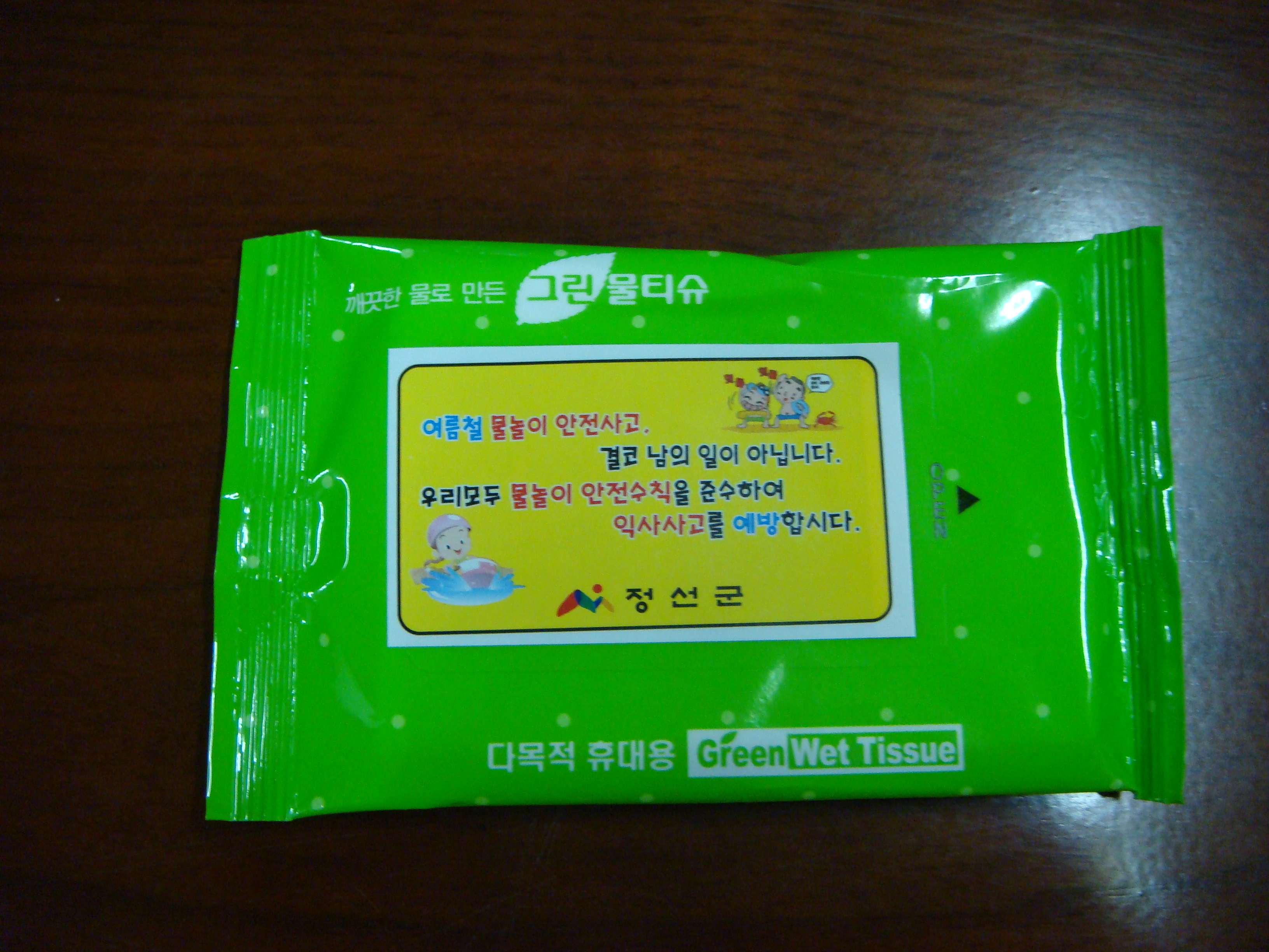 정선군청 재난안전관리과의 물티슈 홍보물을 활용하여