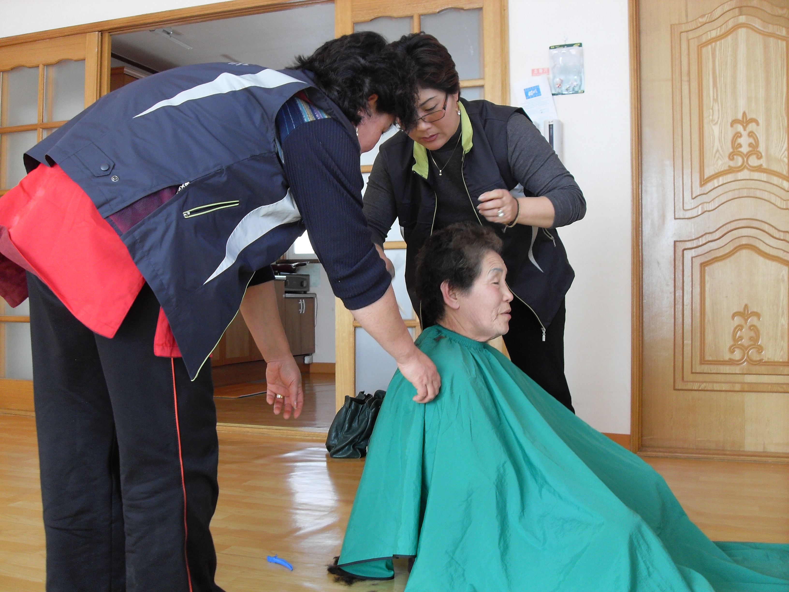 7~8일 2일동안 직원1리 최순선 할머니 외 3분과 마을회관을 방문하여 이,미용봉사