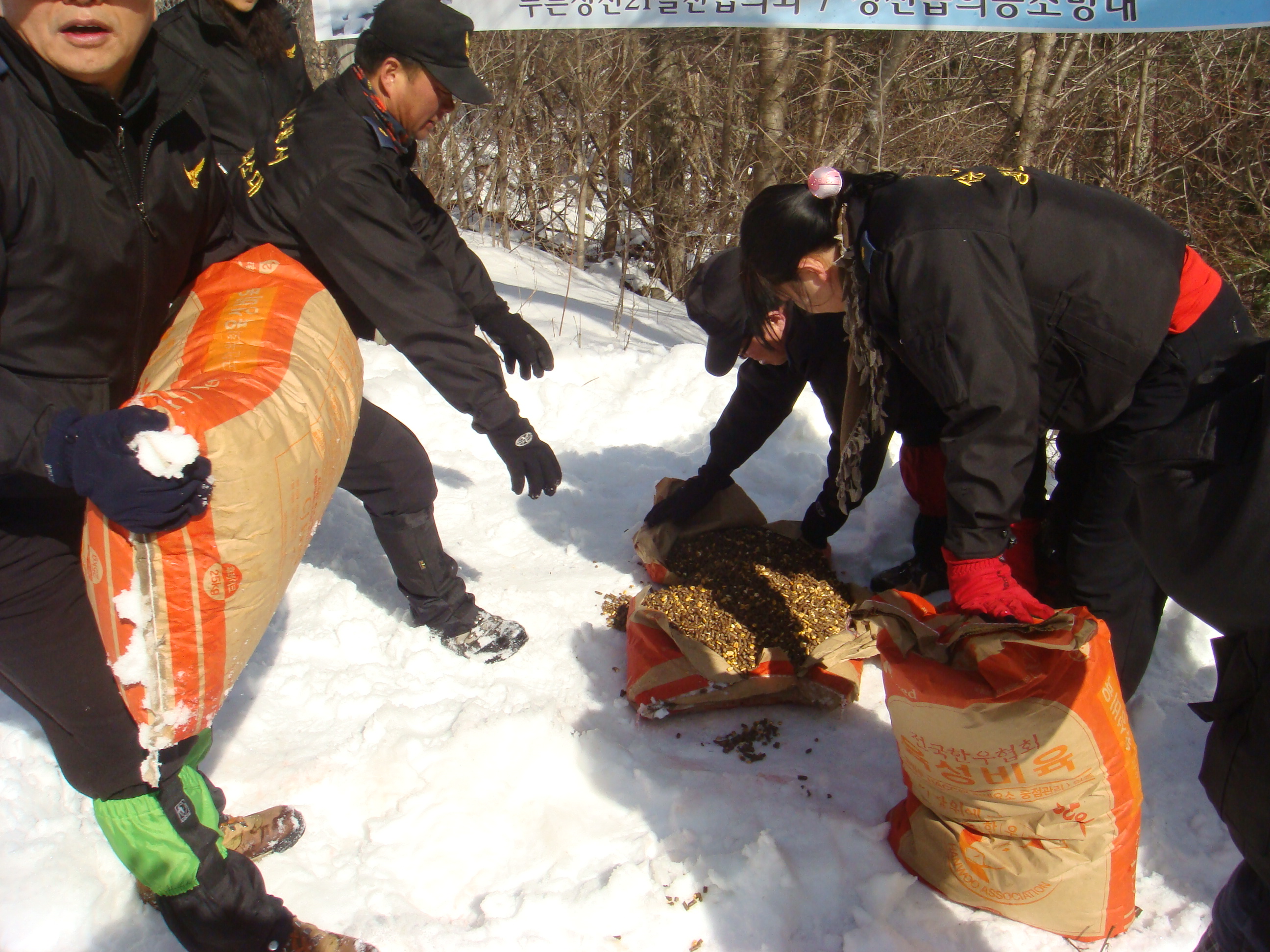 남,여 대원20여명과 함께 가리왕산 중봉일대에 먹이주기행사를 가졌다.
