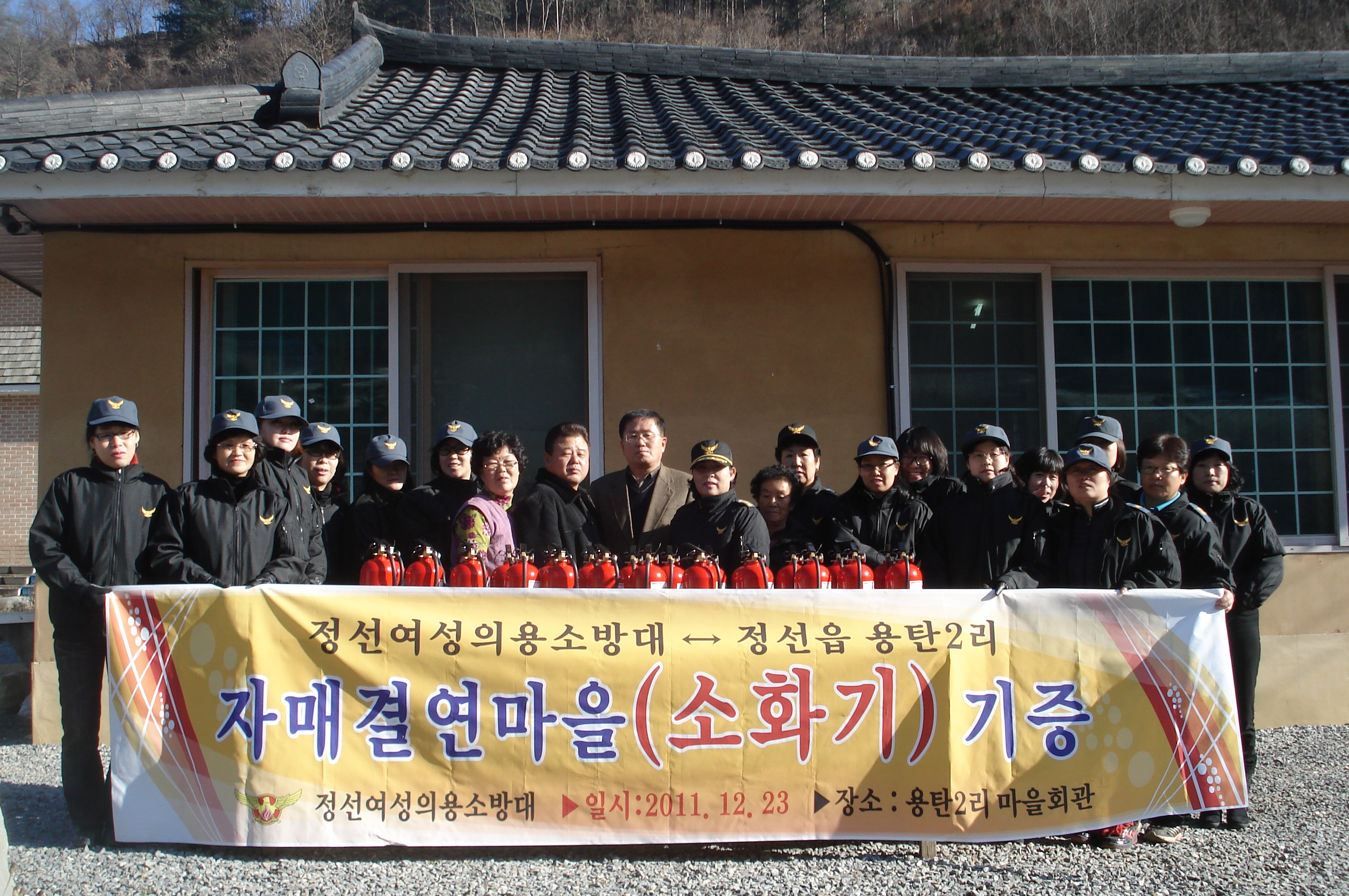 마을주민이 참석한 가운데 소화기 25대를 기증하엿읍니다.