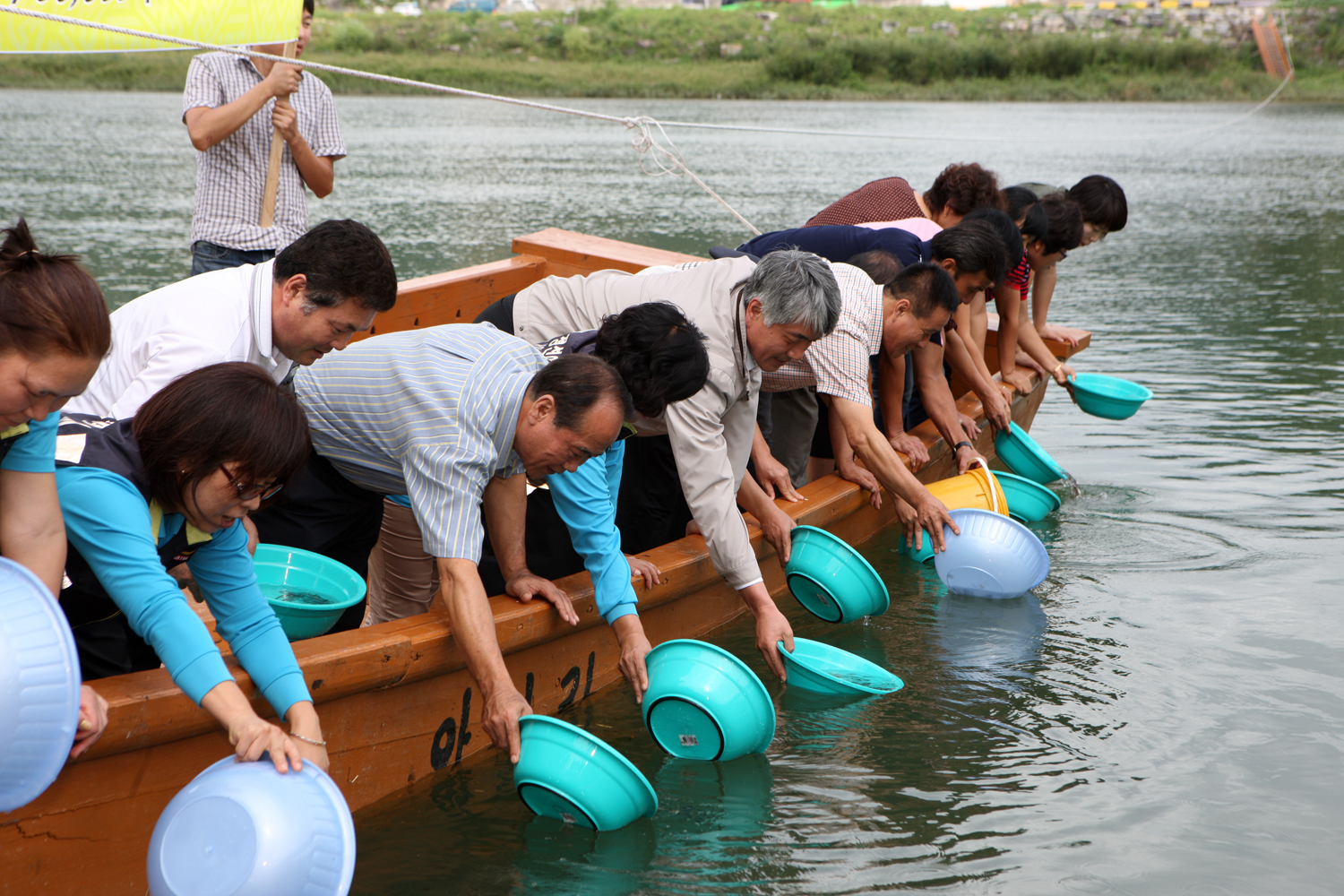 정선여성대 대장 (장순자)는대원들과 9월4일 조양강둔치에서 향토어종 자원조성 민물고기 방류행사 참석 하였다.