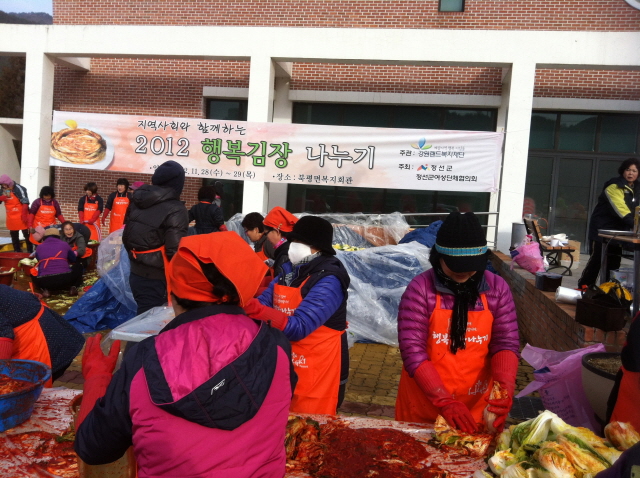 정선여성의용소방대(대장 장순자)에서는 11월 28일부터 2일간 북평면 복지회관(앞)에서 정선군, 정선군여성단체협의회가 주최하는 '행복 김장 나누기 행사'에 참여하였다.