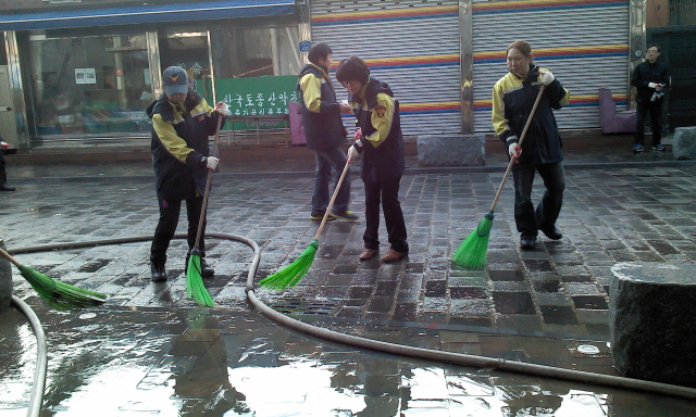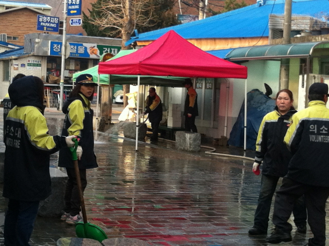 정선여성의용소방대(대장 윤춘희)에서는 4월 5일 정선5일장터 개장을 앞두고 정선읍, 정선소방서, 정선의용소방대원들과 정선읍 5일장터 주변에 쌓인 쓰레기 및 비산먼지 제거의 물청소을 실시하였다.