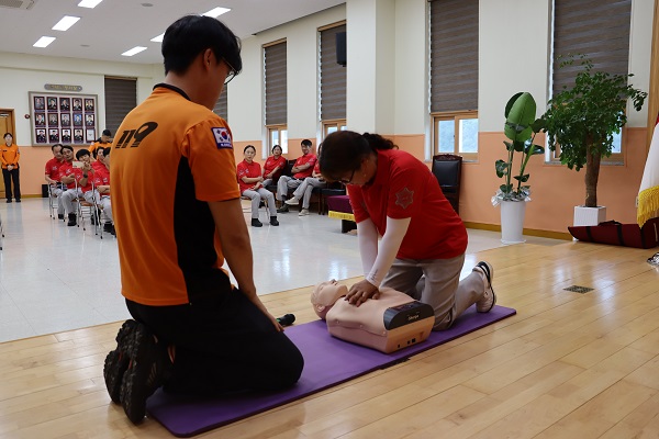 ➤ 정선소방서(서장 유영민)는 지난 18일 정선소방서 대회의실에서 소방공무원 및 119시민수상구조대원 등 50여명이 참여한 가운데 여름철 물놀이 안전사고 예방을 위한 119시민수상구조대원 발대식을 개최했다.
