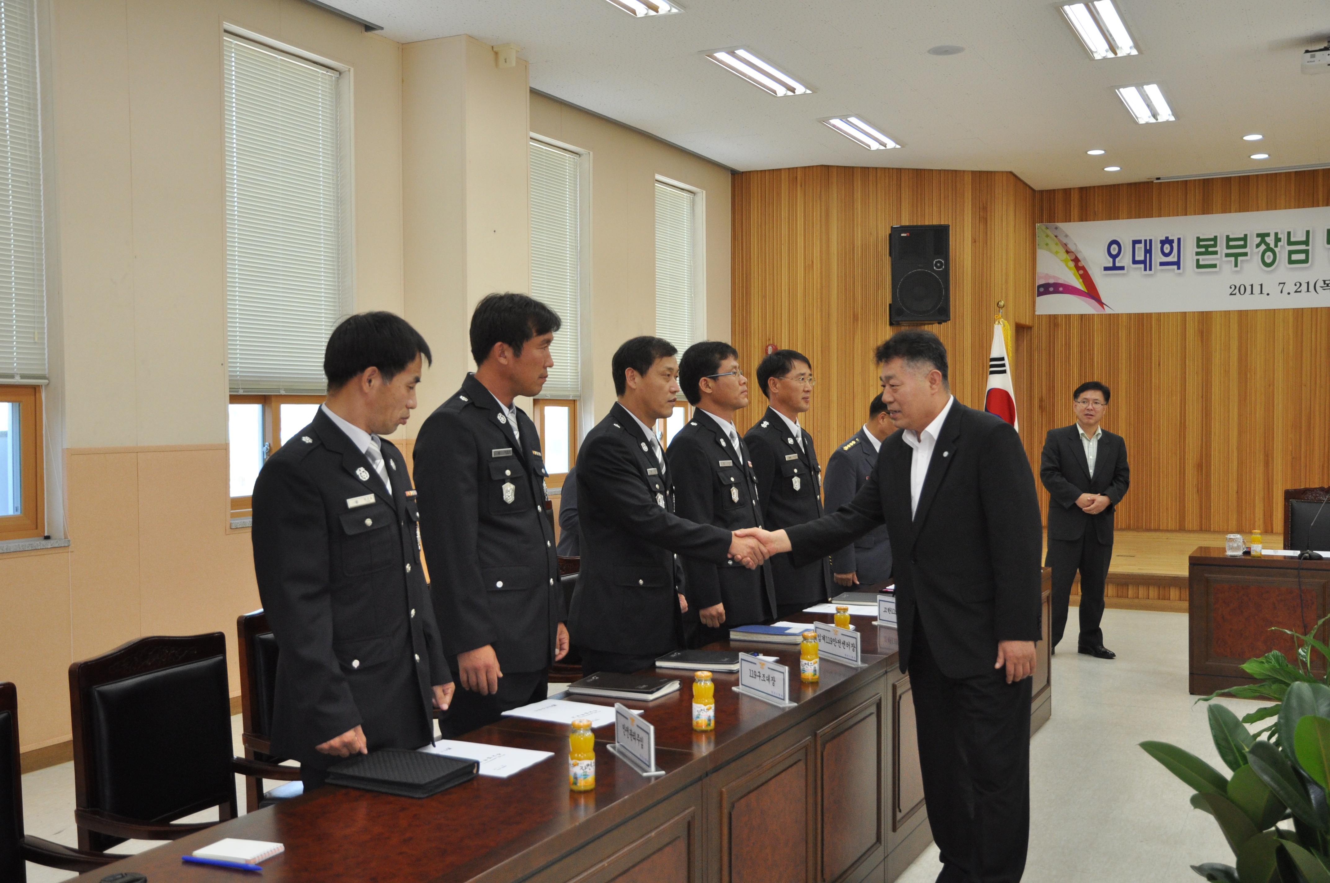 오대희 강원소방본부장이 2011.7.21 오후 정선소방서를 초도 순방했다. 오 본부장은 이날 정승진 정선소방서장으로부터 2011년도 상반기 주요추진업무 및 당면 현안사항 등을 보고받았다.