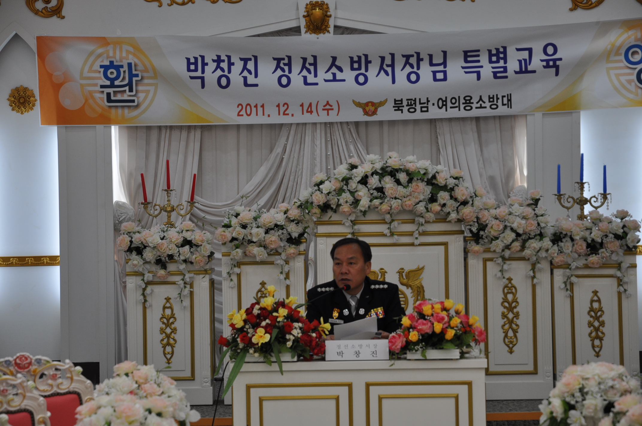 정선소방서장(서장:박창진)은 2011.12.14일 10:00시 북평남.여 의용소방대원에 대한 특별 교육을 실시하여 겨울철 소방안전대책등 당부사항을 전달하고, 특히 겨울철 화재출동 및 대기근무에 철저히 해줄것을 당부 했습니다다.