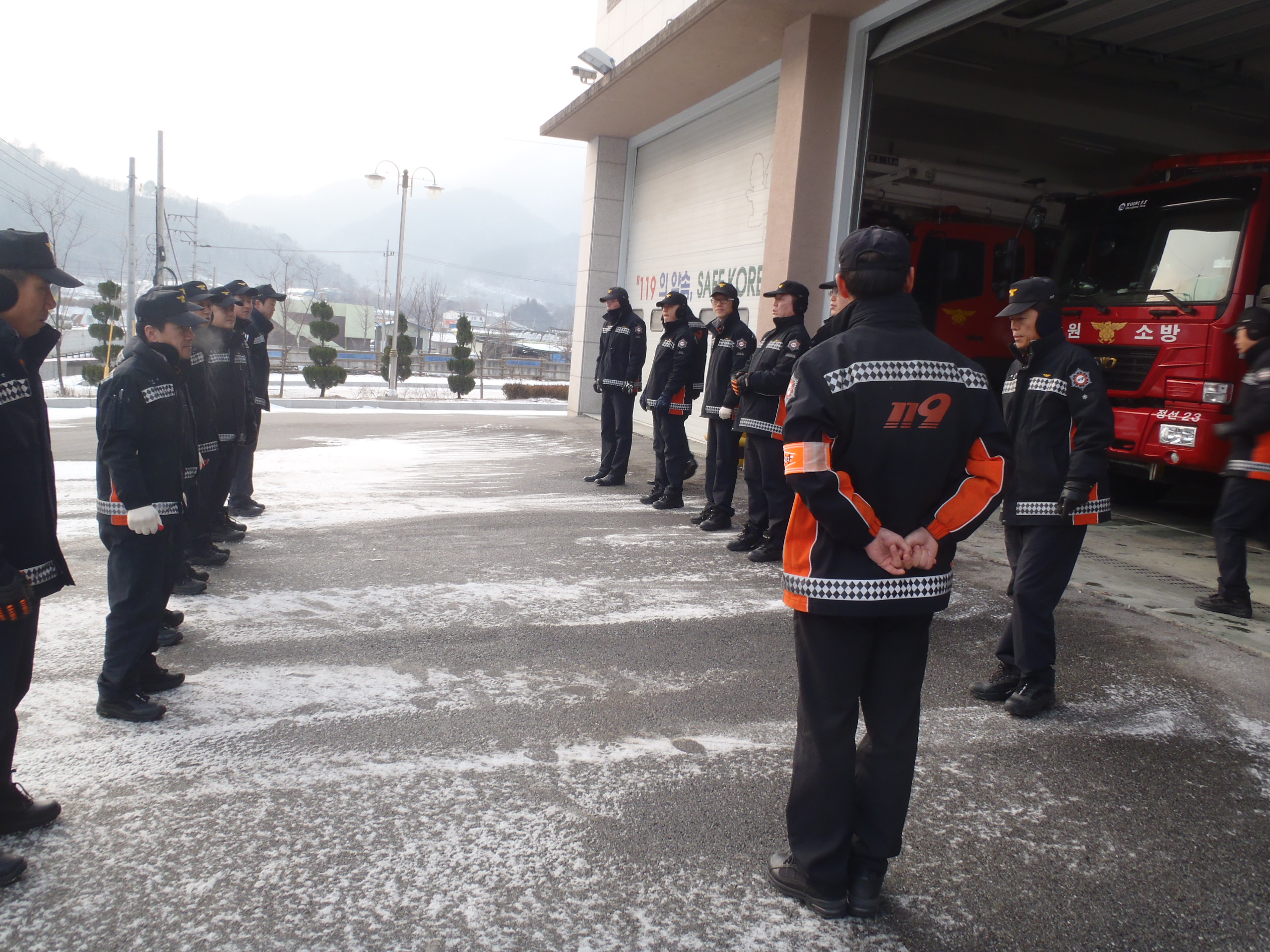 정선소방서(서장 박창진)정선119안전센터에서는 각 출통차량점검을 실시하고 야간근무자로 부터 제반업무를 인수인계 받은 후 안전구호와 함께 임무교대를 실시하였습니다.