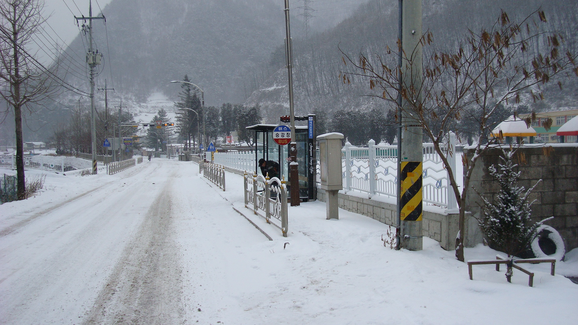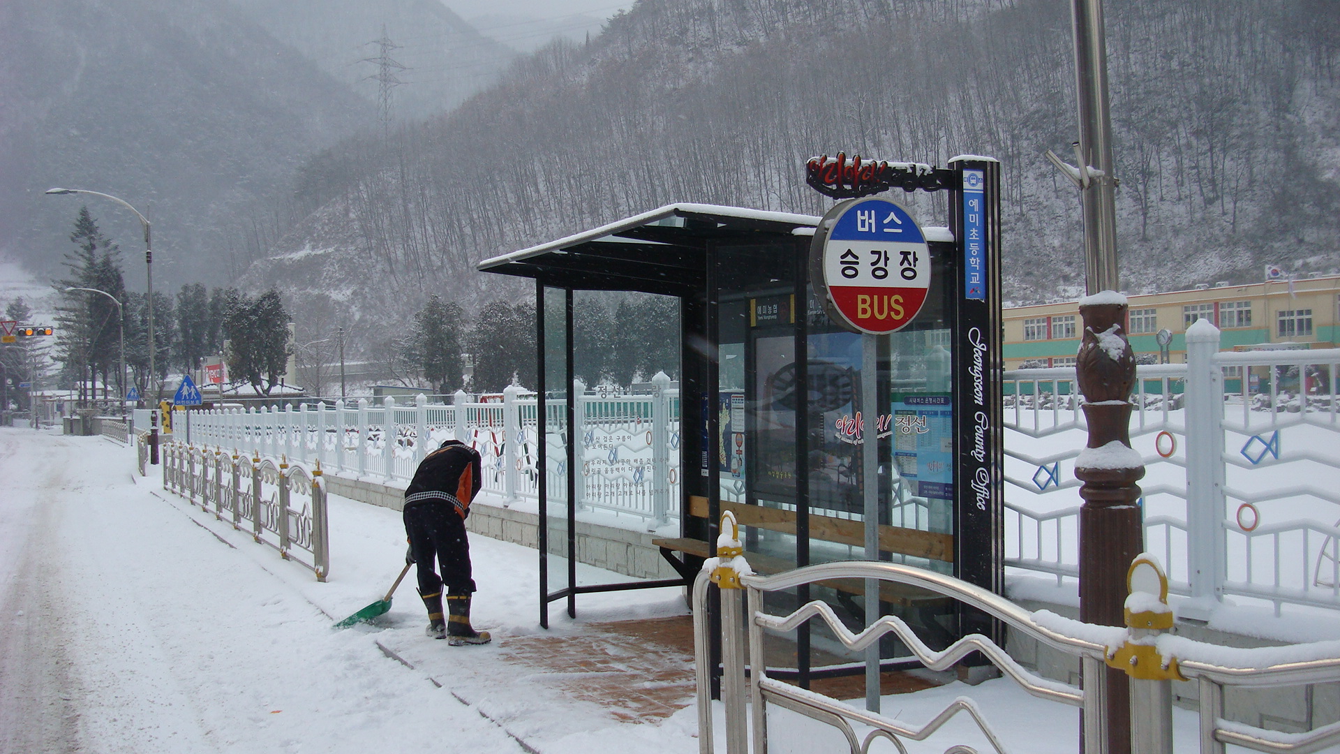 신동119안전센터 앞 버스승강장 제설작업도 했네요