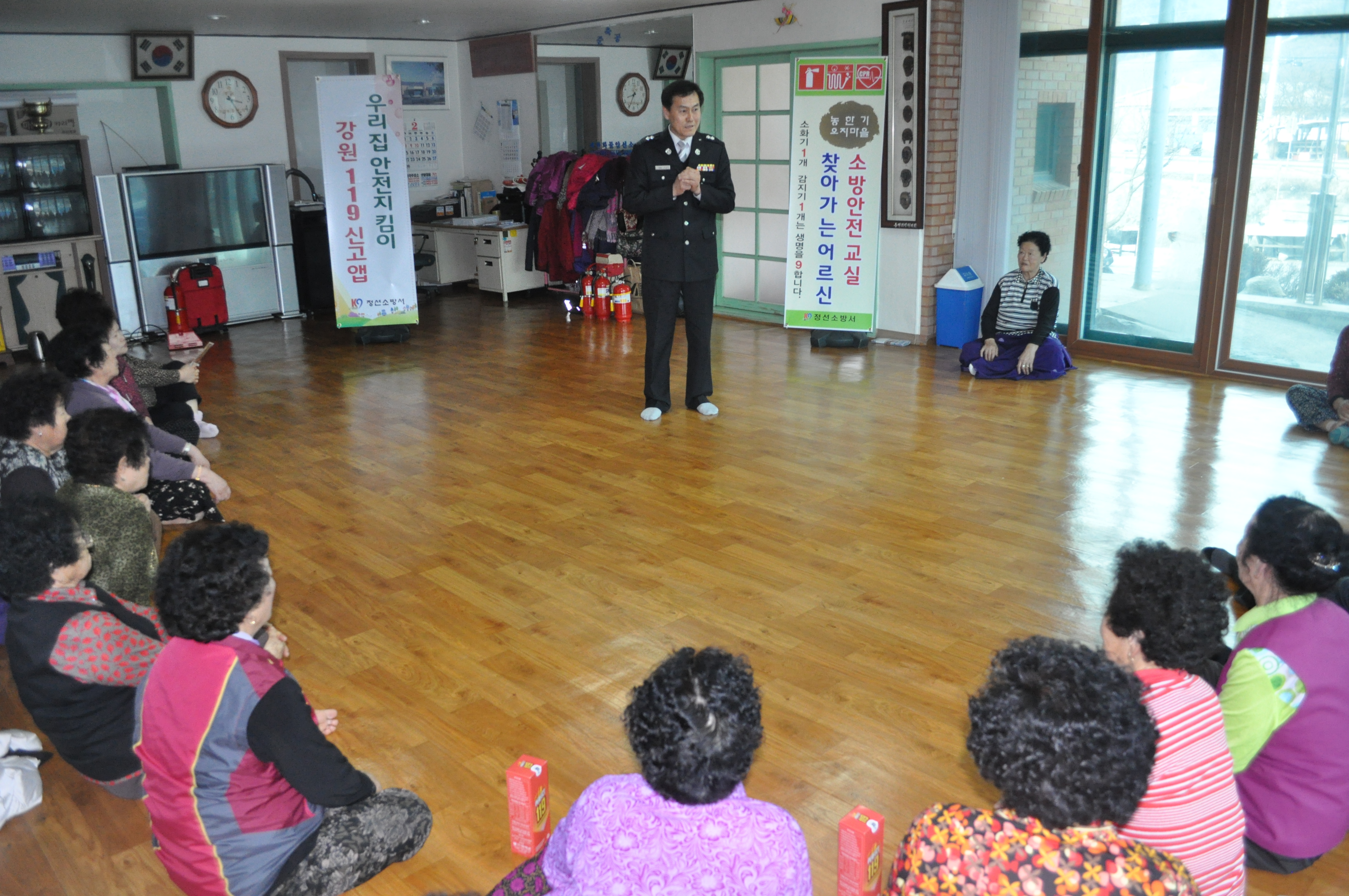 정선소방서(서장 이기중)는 2016. 02. 24 백전리노인정에서 '농한기 오지마을, 찾아가는 소방안전교실' 캠페인을 실시하였습니다.