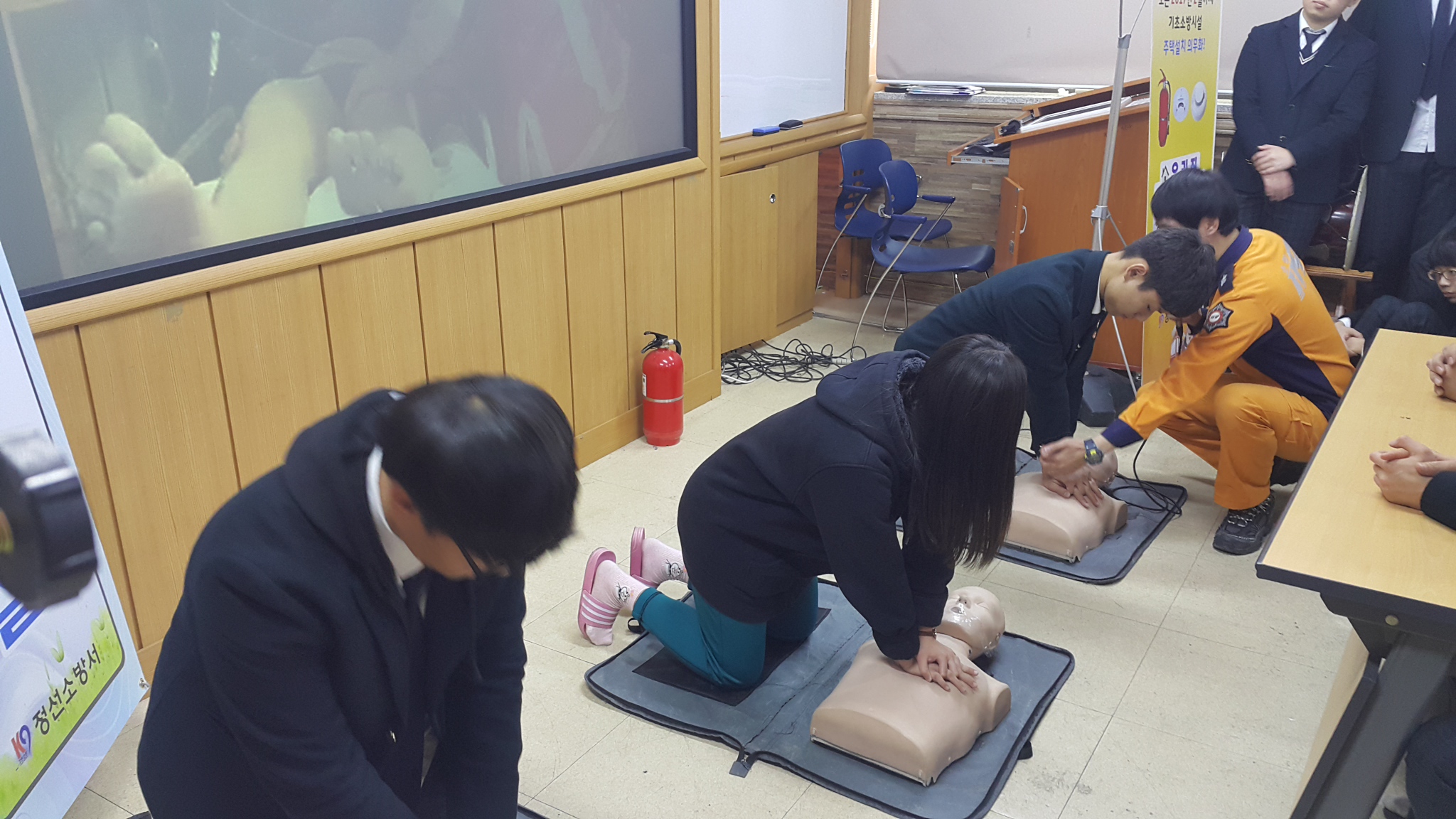 이날 교육에는 화재시 대피요령, 소화기 사용법 및 심폐소생술 등에 관한 교육이 실시되었습니다.