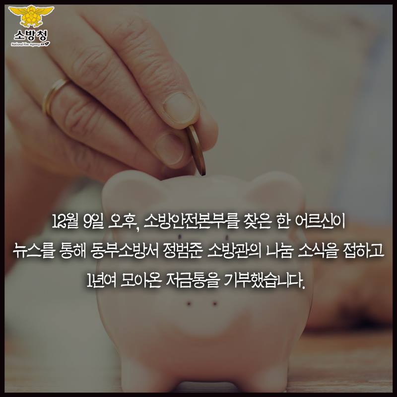 연탄 나눔 소방관에 감동한 어르신이 마음 따뜻한 '저금통 기부'