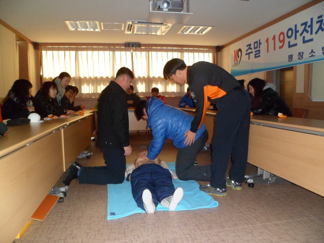 평창소방서(서장 김용락) 대관령119안전센터에서는 2012.12.01. 09:00 예비 사회인이 되는 상지대관령고등학교 고3 수험생을 대상으로 화재에 대한 경각심을 고취하고 화재예방에 동참할 수 있는 계기를 마련하고자 "주말 119안전체험 아카데미"를 개최하였다. 이날 학생들은 소화기 사용법 및 소방안전교육, 심폐소생술(CPR) 및 응급처치교육, 소방관 화재진압 체험 등을 하면서 화재예방 및 안전에 대한 새로운 지식과 마음가짐을 갖는 계기가 되었다.