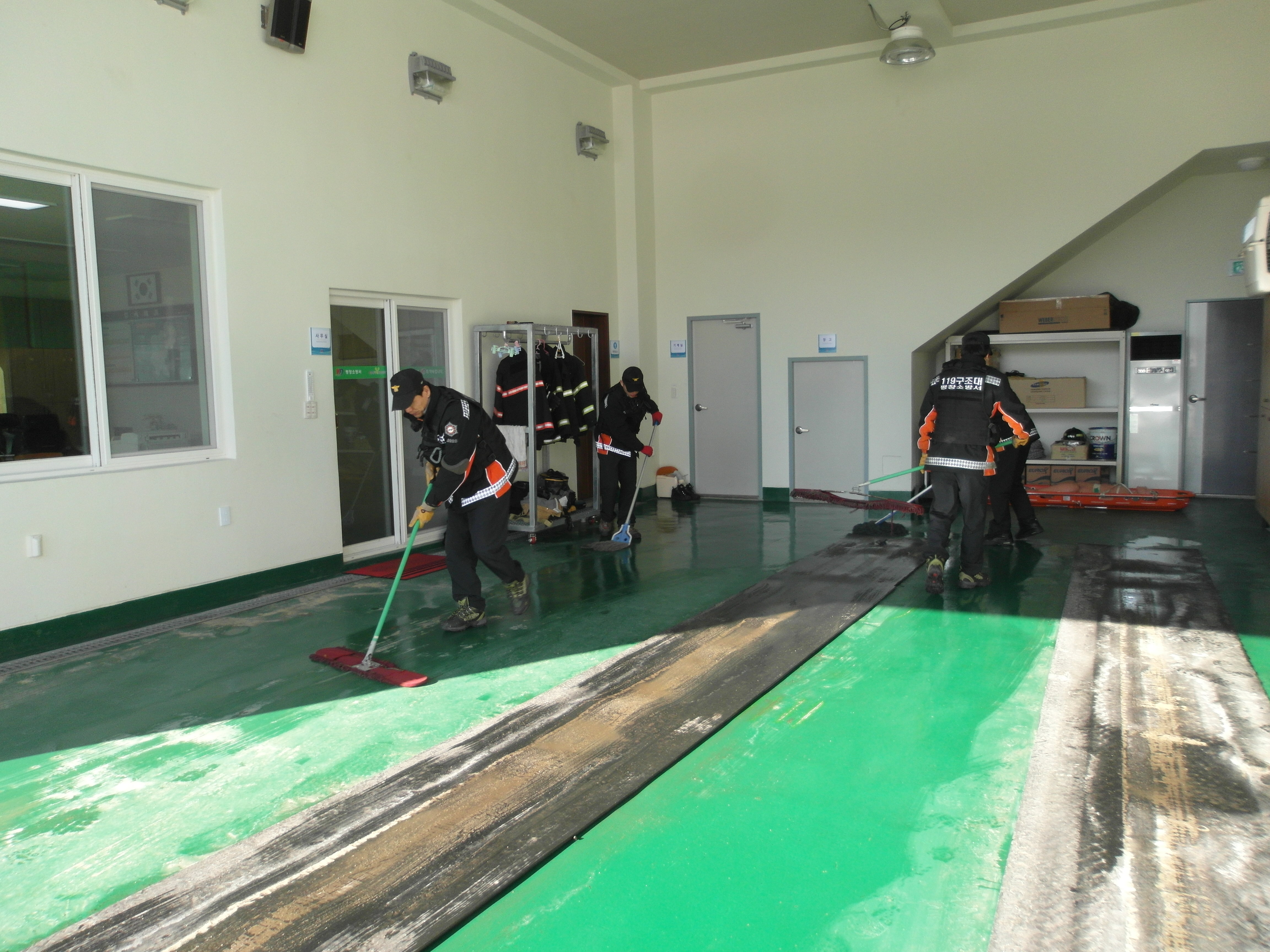차고 부터 사무실 구석구석 청소를 하며 개인복장상태,의무소방실 위생상태까지 꼼꼼히 체크하였더니 마음까지 깨끗하고 더좋은 환경에서 근무여건이 좋아진것 같습니다.