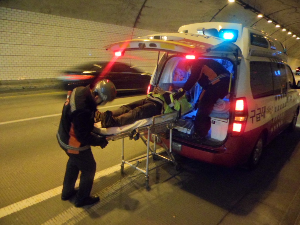 2013.11.26일 오전 10시경 대관령1터널내 차량단도사고로 인한 환자 발생 및 차량화재발생 상황을 부여하여