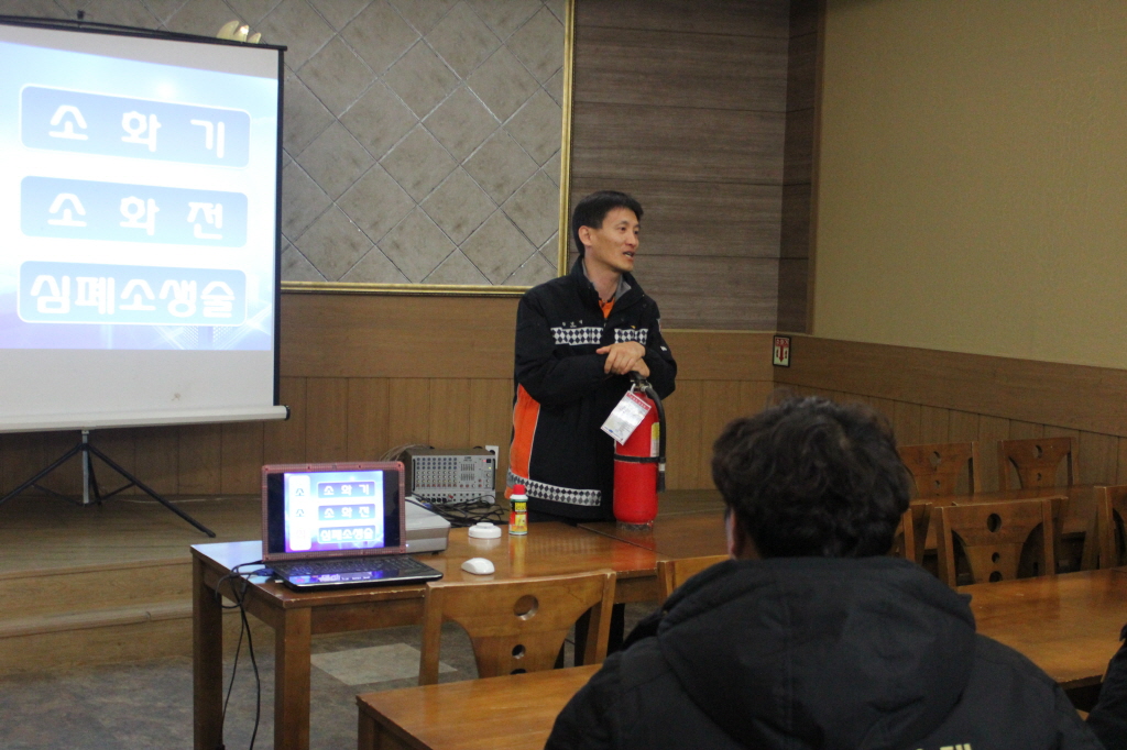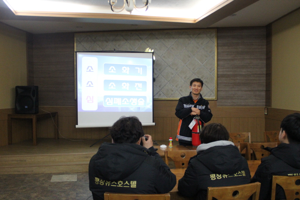 ◇ 평창소방서(서장 김남숙)는 11일 평창유스호스텔 직원25명을 대상으로 화재 및 심정지 시 필수 안전기술인 소 ․ 소 ․ 심(소화기, 소화전, 심폐소생술) 교육을 실시하였다.