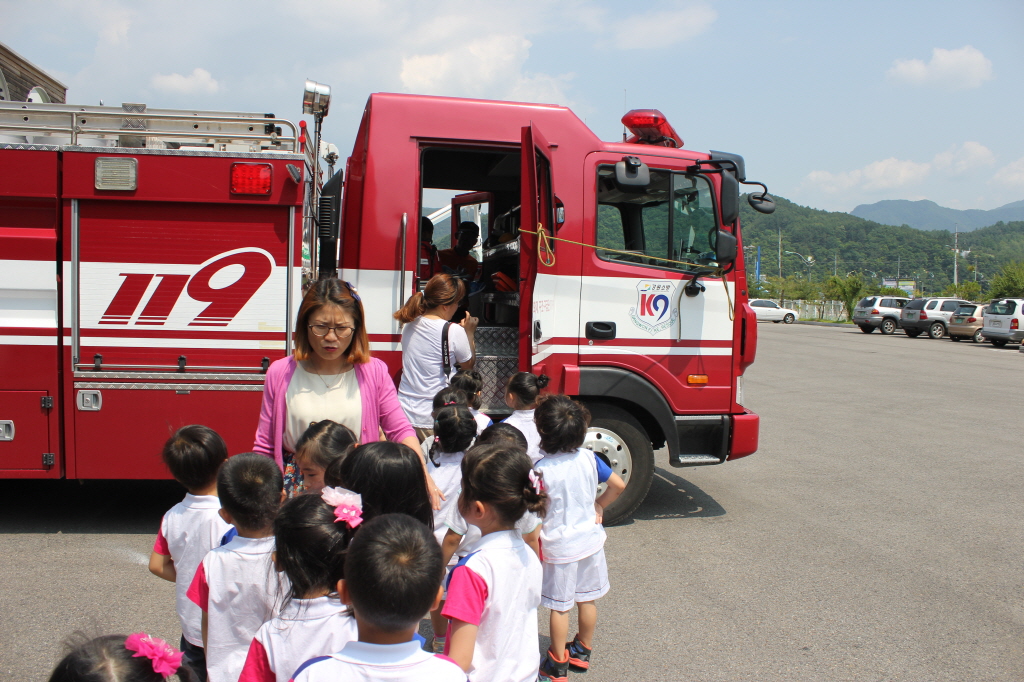 이날 교육은 실내 소방안전교육, 119신고요령, 화재 시 대피요령을 실시 한 후 청사 앞에서 물소화기사용법, 구급차, 펌프차 탑승체험, 굴절차 조작시범 등 체험 위주의 교육으로 진행되었다.