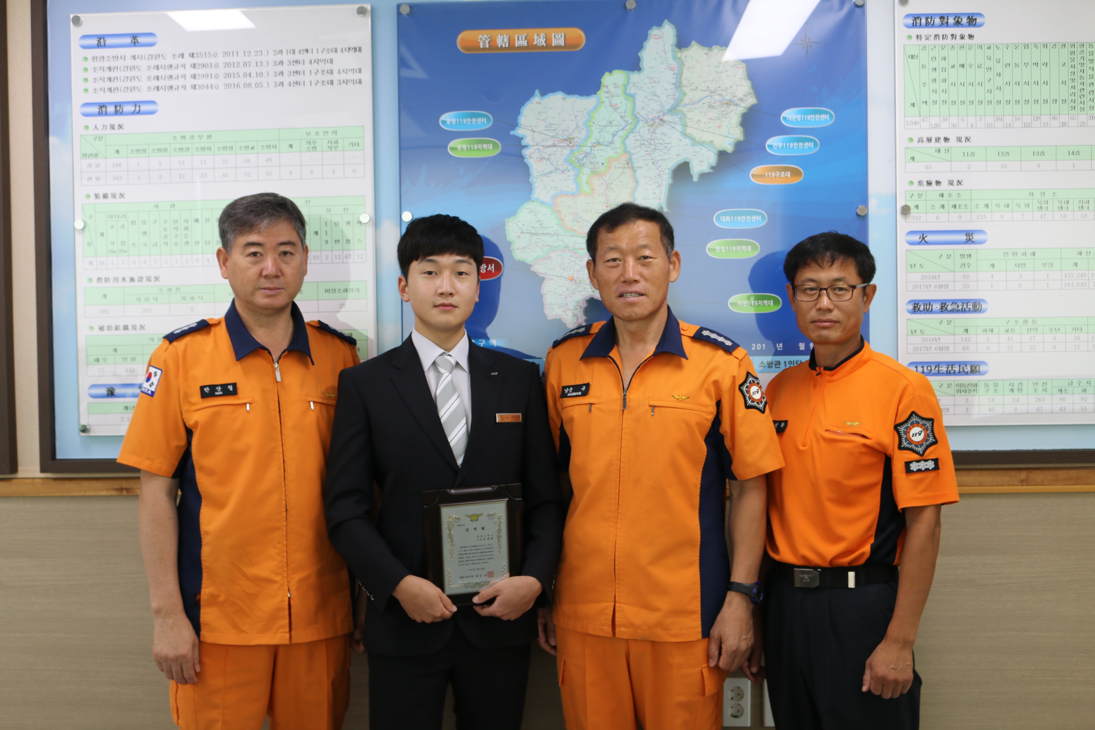이날 전역식에서는 강원도소방본부장의 감사장과 전역증 및 전역패 수여, 서장과 대화의 시간을 가졌습니다.
