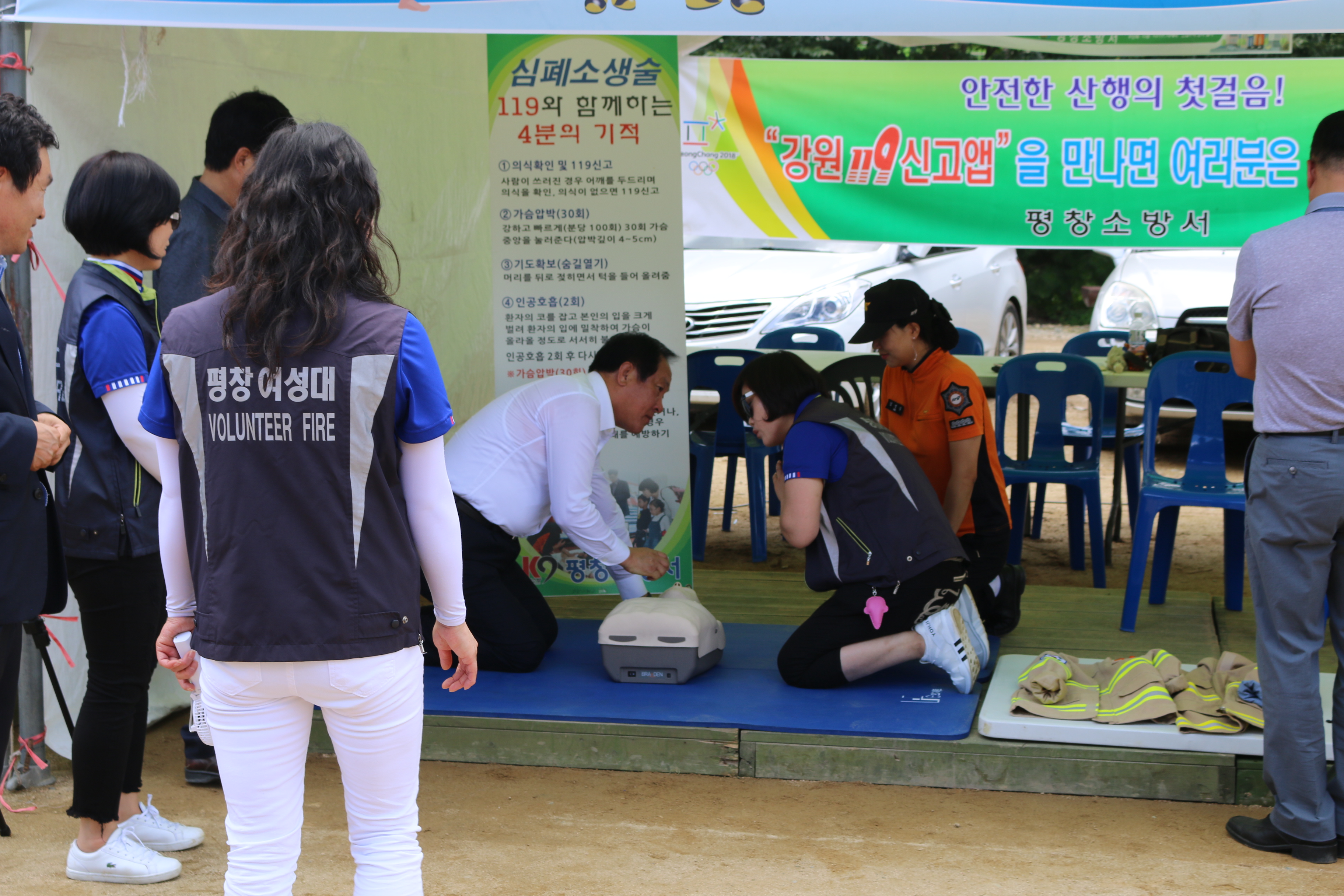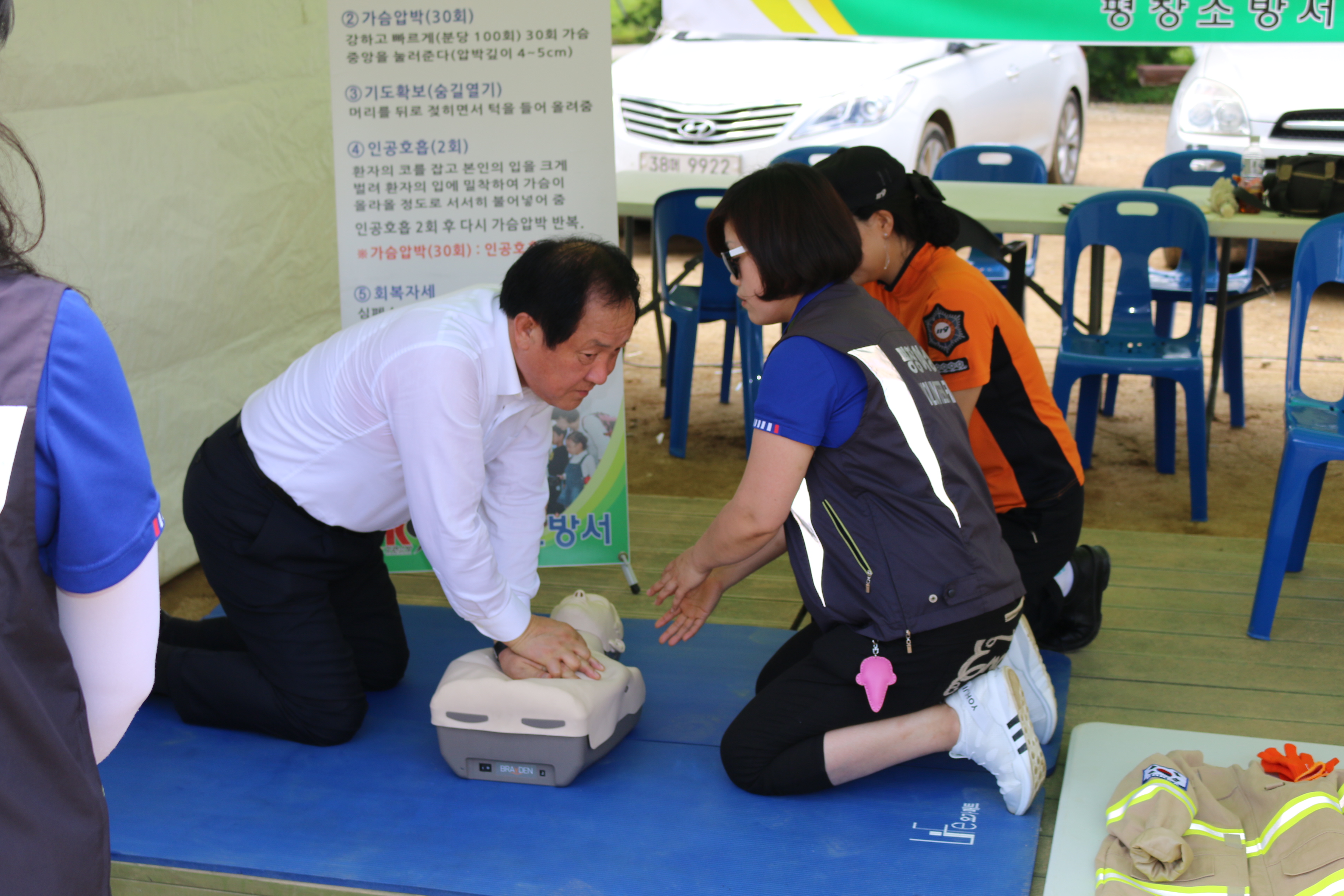 평창소방서(서장 남궁 규)에서 운영중인 119소방안전체험장에 심재국 평창군수가 방문, 심폐소생술 실습 체험을 하였다. 군수는 “심폐소생술은 이미 배운적이 있다, 한번 배워두면 잘 할 수 있고 긴급상황에 유용하게 쓰이는 응급처치술”이라며 그간 익힌 심폐소생술을 능숙하게 실시하였다.