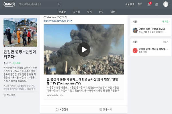 평창소방서는 공사장 화재안전관리를 위한 SNS(네이버밴드)를 운영한다고 밝혔다.
