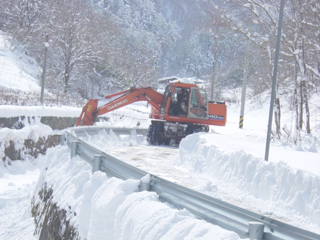12일대원 17명은 대원의 굴삭기및 중장비로 각마을 및 119안전센터로 통하는 인근 진입로및 환선굴 인근 고립마을 제설작업 .