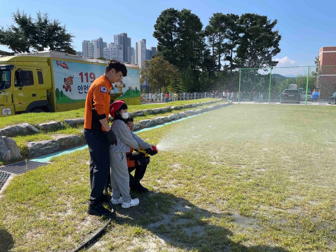 주요 교육 내용으로는 ▼이동안전체험차량을 통한 지진체험 및 대피 교육▼교육용 연기소화기를 통한 소화기 사용법 교육 및 실습 ▼완강기 종류 및 사용법 및 실 착용 교육 ▼심폐소생술 및 자동심장충격기 교육 및 실습▼소방차량 관람 및 방수 조작 체험 ▼무인심폐소생술 교육장 및 소방안전교육 패러다임 홍보 등이다.