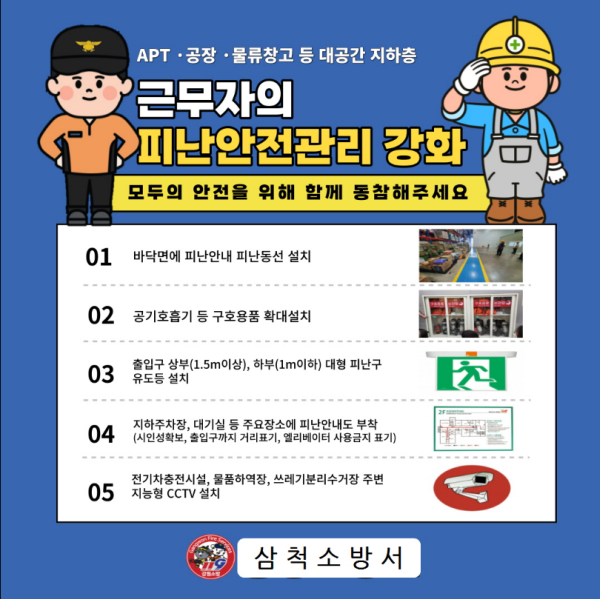 | 854 | 삼척소방서, 대공간 지하층 피난 안전관리 강화 당부 | 삼척홍보 | 2023-02-16 | 1729 | |