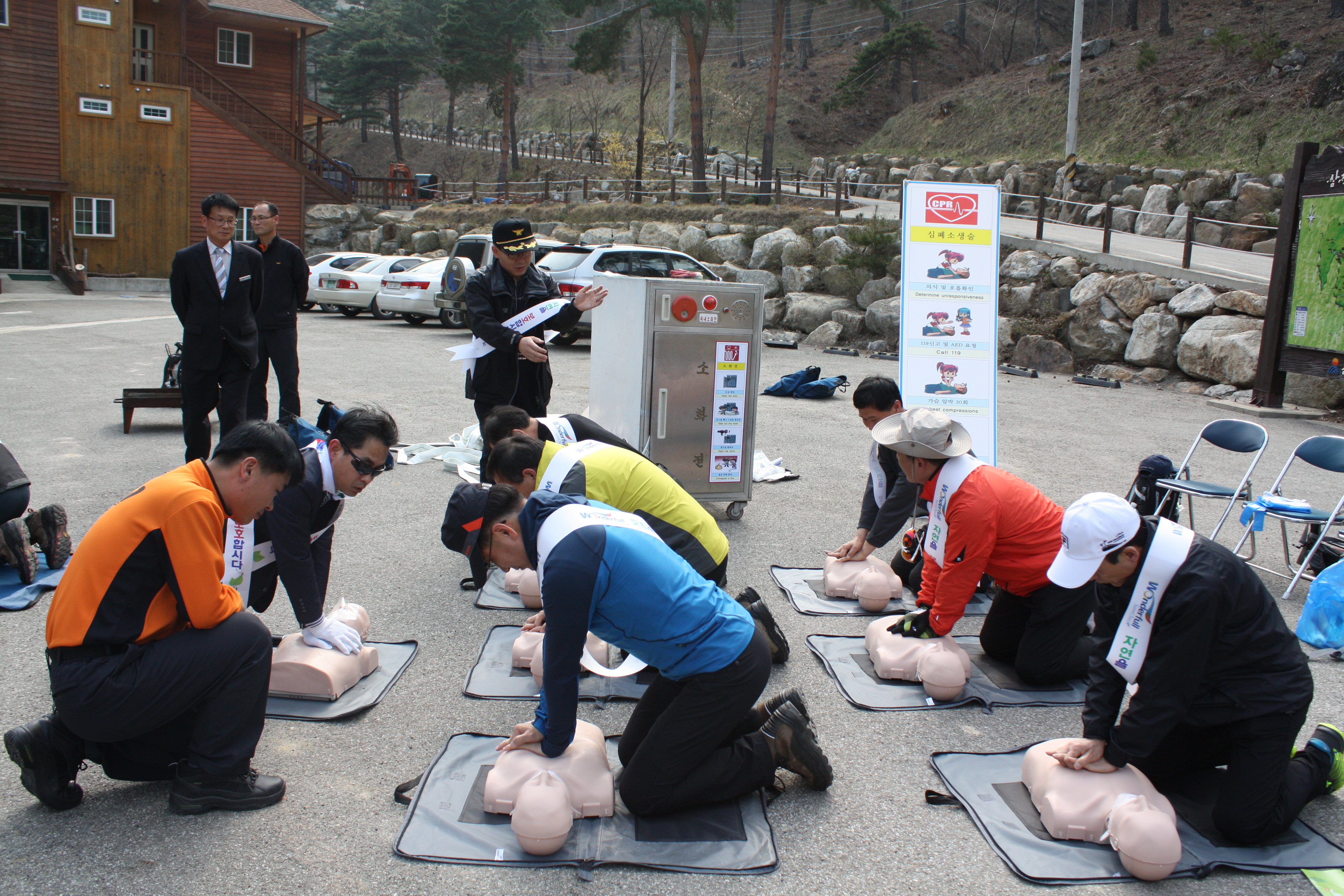 2014년 4월 2일 14시부터 삼척시 원덕읍에 소재하고 있는 검봉산 자연휴양림에서 삼척 관내 기관·단체장 17명을 대상으로 소화기 소화전 심폐소생술 교육 및 안전 체험 활동을 실시하였다.