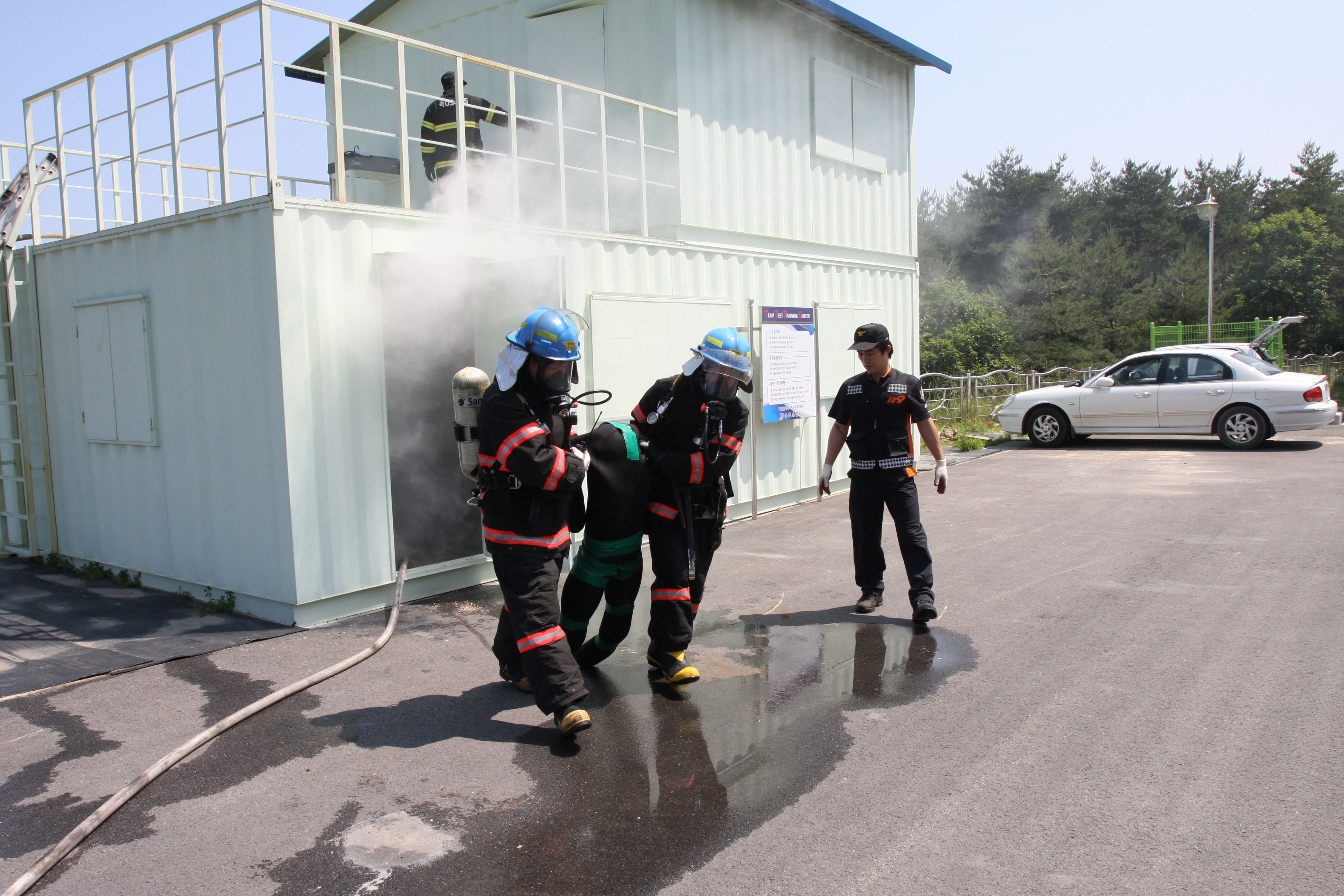 화재진압 훈련이 테스팅 훈련장에서 실시되었다.
