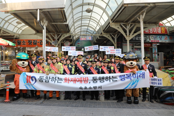 속초소방서(서장, 정효수)는 제55주년 소방의 날을 맞이해 속초시청 및 중앙시장에서 캠페인을 실시했다.