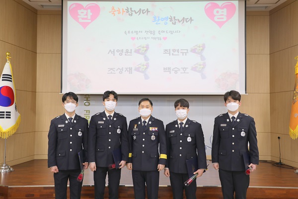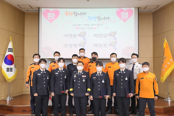 속초소방서(서장 김재석)는 25일 2021년 첫 새내기 소방공무원 4명에 대해 임용식을 실시했다고 밝혔다.